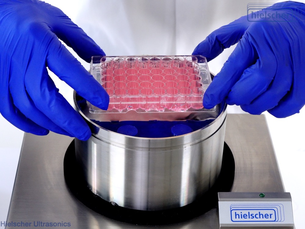 અલ્ટ્રાસોનિક બાથમાં, પોલાણ, સોનિકેશનનો કાર્યકારી સિદ્ધાંત, ખૂબ જ અસમાન રીતે નમૂનાઓને વિવિધ સોનિકેશન સારવારમાં નિકાલ કરવામાં આવે છે. અલ્ટ્રાસોનિક બાથમાં નમૂના ટ્યુબની સ્થિતિના આધારે, દરેક નમૂના વિવિધ તીવ્રતાથી પ્રભાવિત થાય છે. પ્રોટીઓમિક્સ તુલનાત્મકતા પર આધાર રાખે છે. જો એક પેલેટ અપૂર્ણ રીતે ઓગળી જાય છે જ્યારે બીજી સંપૂર્ણપણે ફરીથી સસ્પેન્ડ કરવામાં આવે છે, તો પરિણામી ડેટા સાચા જીવવિજ્ઞાનને બદલે તૈયારી પૂર્વગ્રહને પ્રતિબિંબિત કરી શકે છે. અલ્ટ્રાસોનિક બાથથી વિપરીત, VialTweeter અથવા માઇક્રોપ્લેટ સોનિકેટર UIP400MTP જેવા બિન-સંપર્ક સોનિકેટર વધુ પ્રમાણિત હેન્ડલિંગને સમર્થન આપે છે, જેનાથી ઘણા નમૂનાઓ મેળ ખાતી અલ્ટ્રાસોનિક પરિસ્થિતિઓ હેઠળ સમાંતર રીતે પ્રક્રિયા કરી શકાય છે, જે પ્રયોગોમાં પ્રજનનક્ષમતા સુધારવામાં મદદ કરી શકે છે. આ ખાસ કરીને બાયોમાર્કર અભ્યાસો, તુલનાત્મક પ્રોટીઓમિક્સ અને બહુવિધ જૈવિક અથવા તકનીકી પ્રતિકૃતિઓ સાથે વર્કફ્લોમાં ઉપયોગી છે.